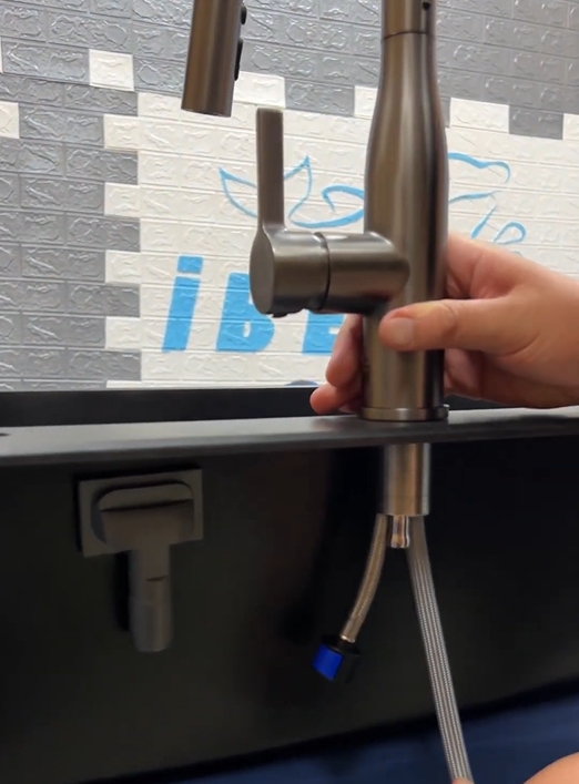 將廚房龍頭,插入洗碗槽的龍頭安裝孔。