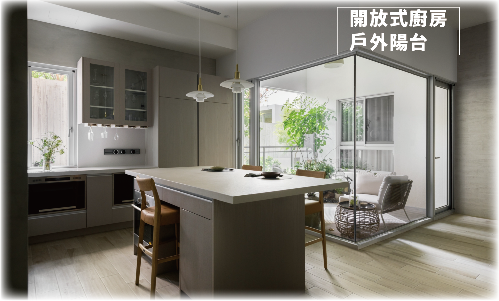 〃戶外的陽台空間,整體設計為清爽的白色調