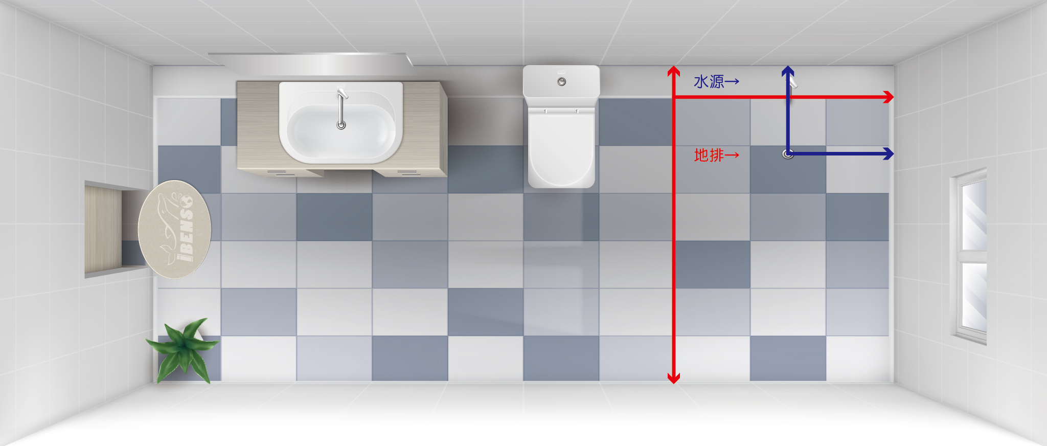 3️⃣自行測量地板排水孔(地排)的 中心點距離 兩道牆面距離(如圖示👉🏻藍箭頭)